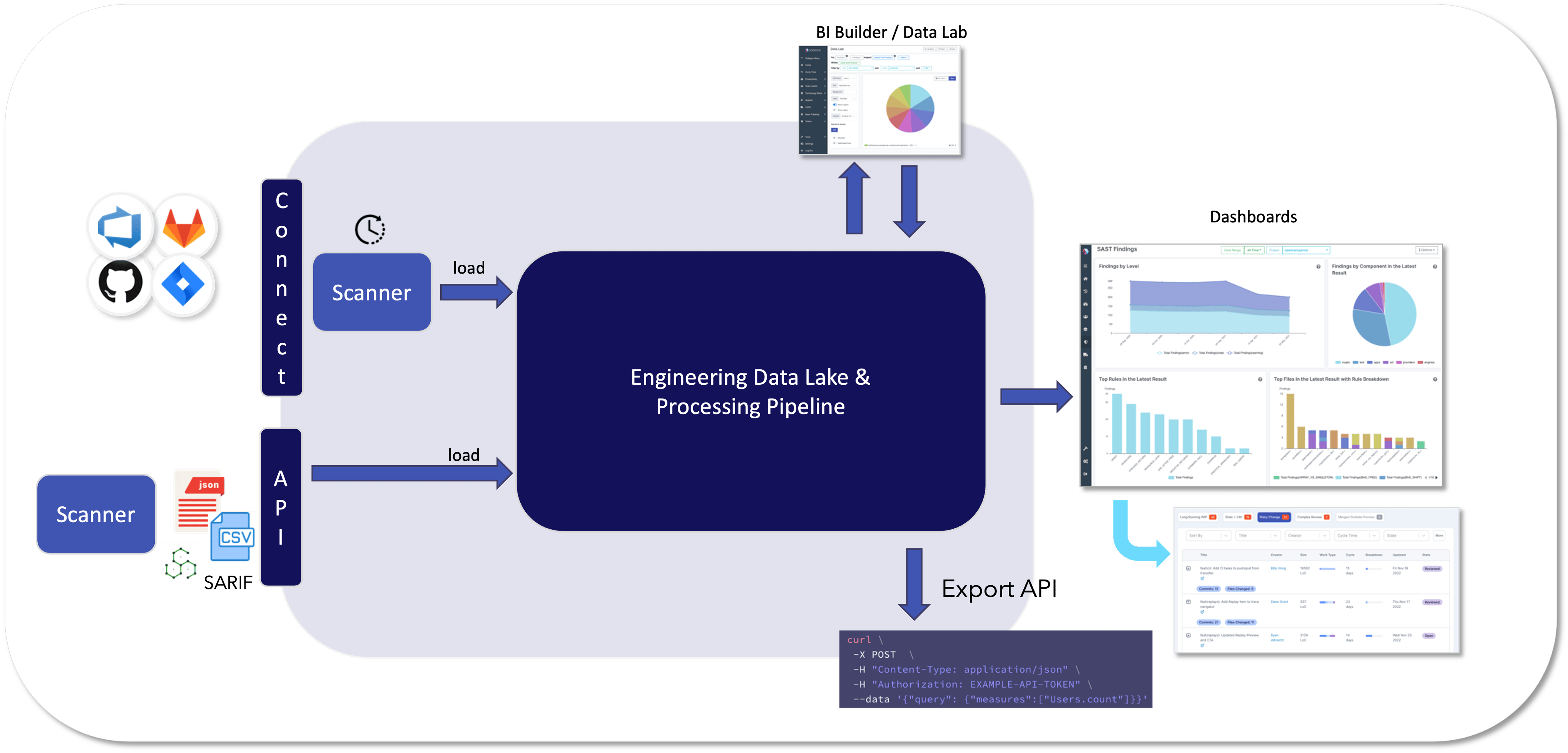 Logilica connects to your engineering tools through first-class connectors and regularly scans your metadata for updates to commute metrics and insights. We also provide upload APIs for custom data and custom connector types.